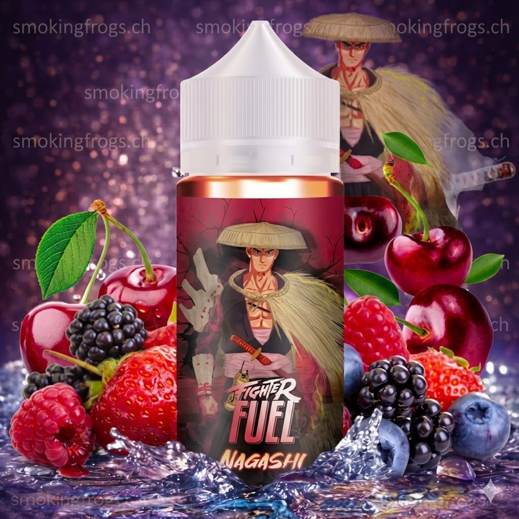 L'e-liquide Nagashi 100ml signé Fighter Fuel est un véritable uppercut gustatif. Retrouvez le goût charnu de la cerise, délicatement accompagné de baies rouges et d'une fraîcheur polaire redoutable. Un e-liquide grand format conçu pour les amateurs de fruits rouges givrés.