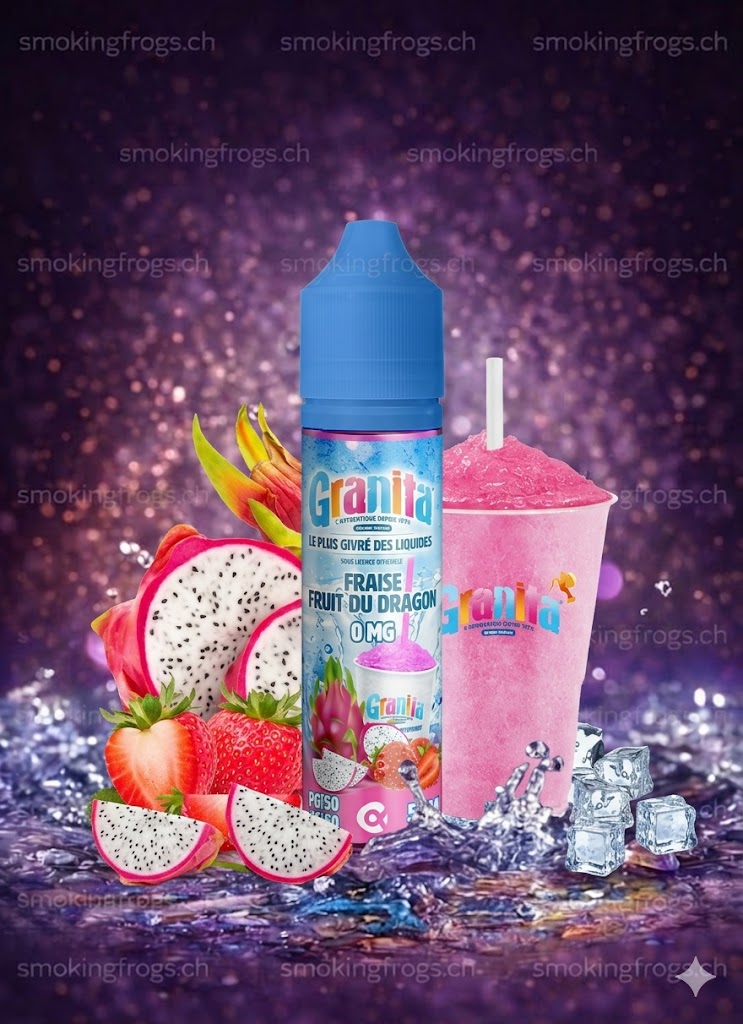 Plongez au cœur de l'été avec l'e-liquide Fraise Fruit du Dragon 50ml de la gamme officielle Granita by Alfa, élaboré avec le savoir-faire du célèbre fabricant français Alfaliquid. Ce shortfill fruité et glacé est un véritable tourbillon d'exotisme pour votre cigarette électronique, reproduisant avec une précision redoutable la mythique boisson givrée : la douceur sucrée d'une fraise bien rouge et juteuse tendrement mariée aux notes tropicales et délicates du fruit du dragon (pitaya), le tout généreusement mixé dans une irrésistible glace pilée ultra-rafraîchissante. Un e-liquide 50ml grand format parfaitement équilibré, idéal pour offrir à votre vape quotidienne une explosion intensément désaltérante et délicieusement addictive.